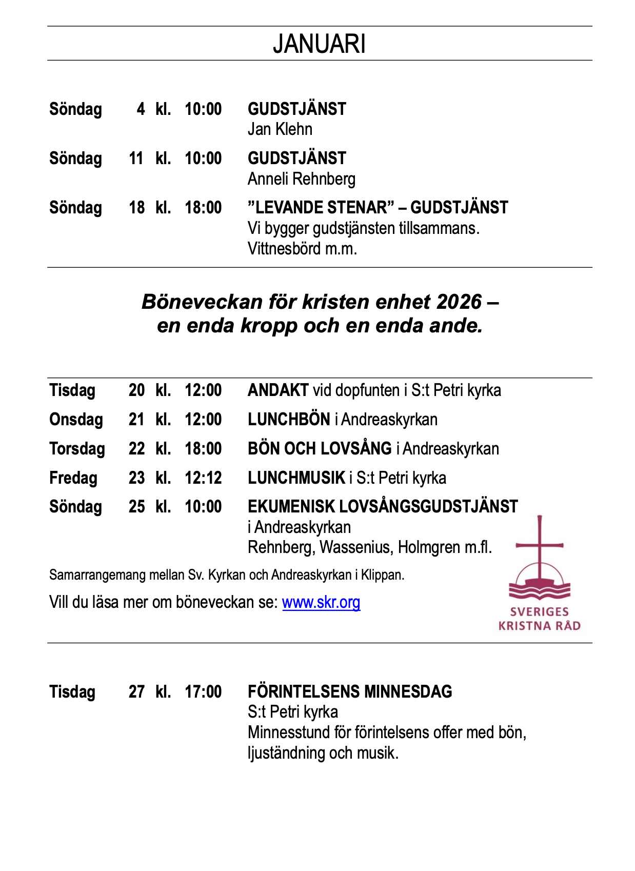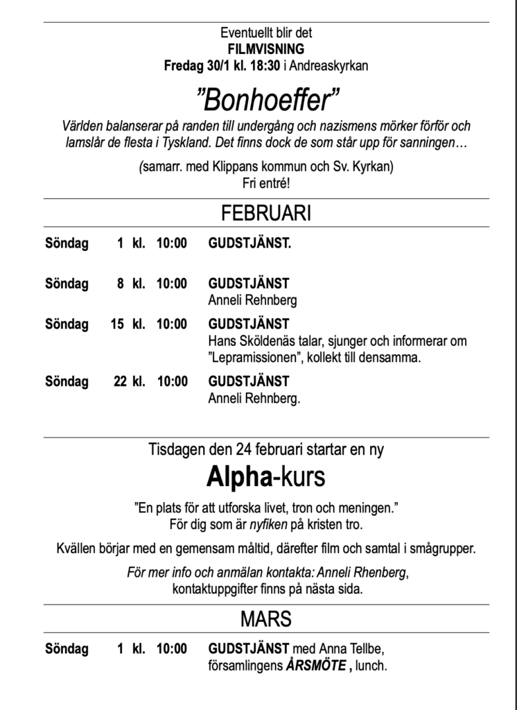 Här publicerar vi vårt aktuella program, som vanligen gäller för tre månader. Förstora bilden om du vill se texten tydligare.